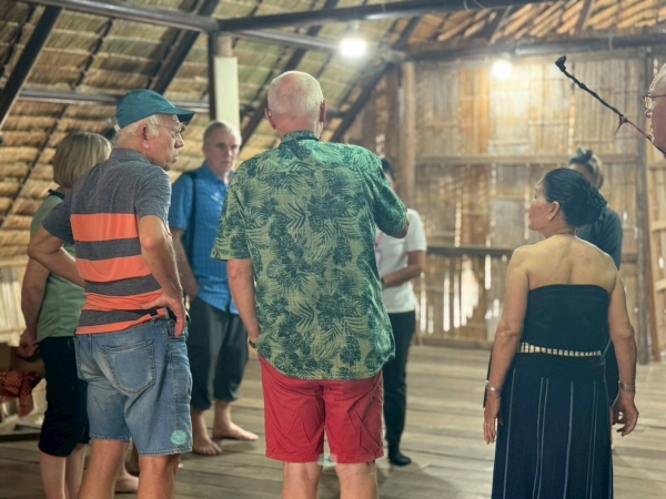วันพฤหัสบดีที่ 12 กุมภาพันธ์ พ.ศ.2569 เวลา 12.30 น. เจ้าหน้าที่ศูนย์วัฒนธรรมไทยทรงดำเขาย้อย พร้อมกับวิทยากรภูมิปัญญาท้องถิ่นไทยทรงดำ ร่วมต้อนรับคณะศึกษาดูงานชาวต่างชาติ ที่เดินทางมาศึกษาดูงานวิถีชีวิตไทยทรงดำ