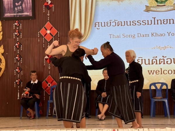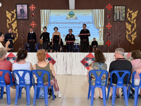 วันที่ 19 กุมภาพันธ์ 2569 เวลา 12.30 น. เจ้าหน้าที่ศูนย์วัฒนธรรมไทยทรงดำเขาย้อย พร้อมกับวิทยากรภูมิปัญญาท้องถิ่นไทยทรงดำ ร่วมต้อนรับคณะต่างชาติชาวเยอรมัน จำนวน 7 คน ศึกษาดูงานวิถีชีวิตไทยทรงดำ ณ ศูนย์วัฒนธรรมไทยทรงดำเขาย้อย