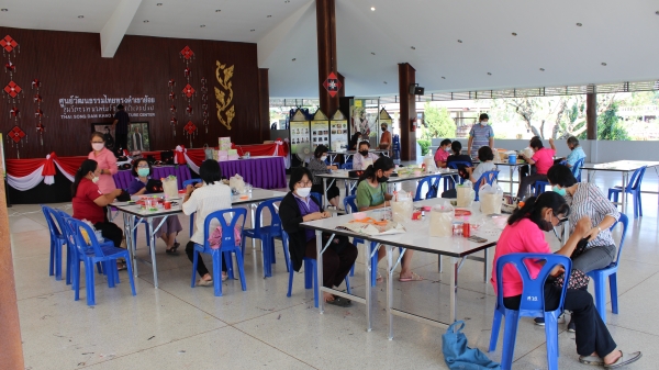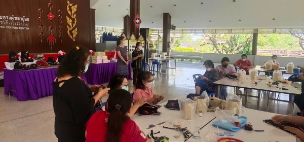 โครงการกิจกรรมภายในศูนย์วัฒนธรรมไทยทรงดำเขาย้อย(การฝึกอบรมเกี่ยวกับงานด้านศิลปวัฒนธรรมพื้นบ้าน)การอบรม/ฝึกการประดิษฐ์ดอกหน้าหมอนตกแต่งประยุกเป็นกล่องกระดาษเช็ดหน้า วันที่ 8 กุมภาพันธ์ 2565 ณ ศูนย์วัฒนธรรมไทยทรงดำเขาย้อย