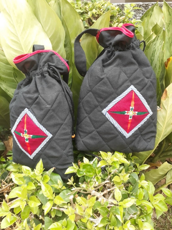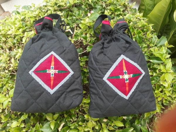 ผลิตจากผ้าทอมือ ตกแต่งด้วยดอกหน้าหมอนเอกลักษณ์วัฒนธรรมไทยทรงดำ