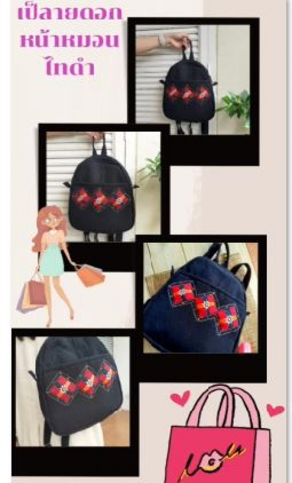 กระเป๋าสะพาย ผ้าทอมือดอกหน้าหมอนไทยทรงดำ