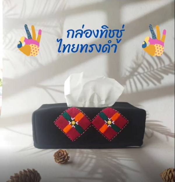 การนำผ้าทอไทยทรงดำมาแปรรูปเป็นของใช้ในชีิวิตประจำวัน กล่องกระดาษทิชชู