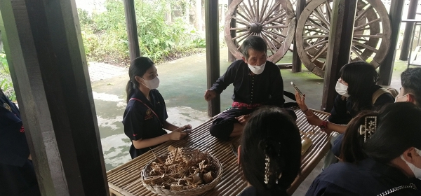 ภูมิปัญญาท้องถิ่นไทยทรงดำให้ความรู้ ด้านการจักสาน เช่น สานพัดใบตาล สานพัดจากไม้ไผ่ สานเป็นรูปสัตว์ต่างๆ ในพิธีกรรม แก่คณะศึกษาดูงาน